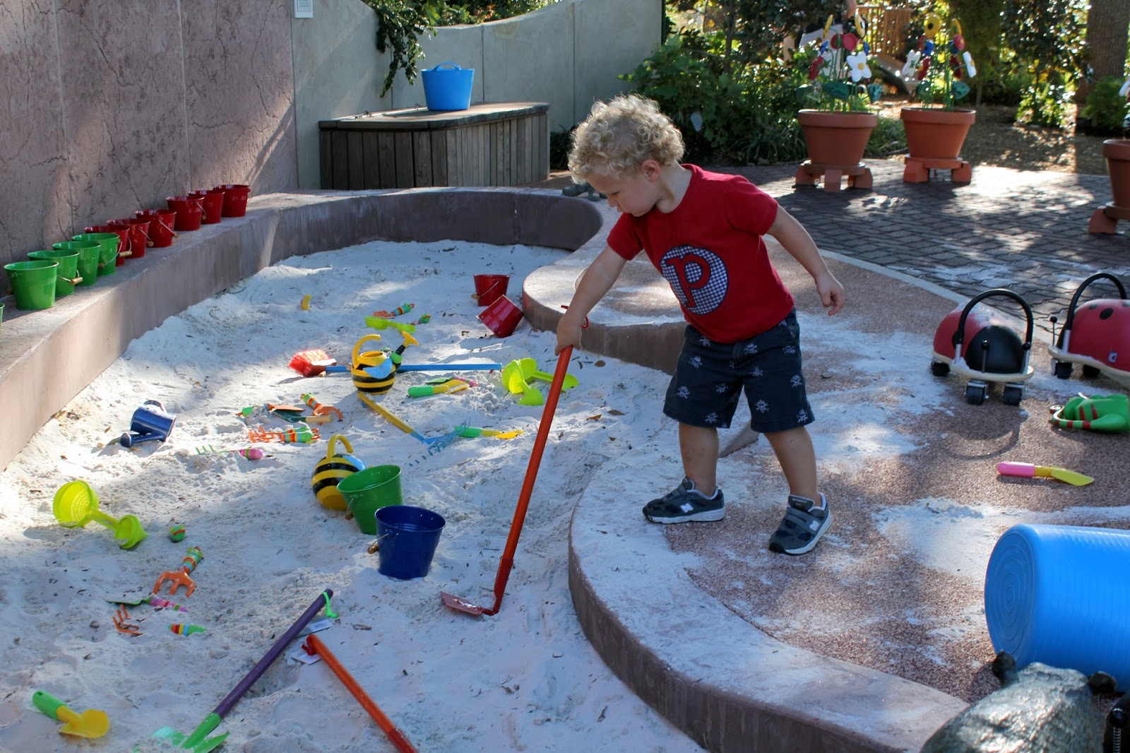 And earlier this week, I previewed the new Children's Garden at the Arboretum (which is fab, btw!). In an attempt to lure Palmer to the next stop on the garden tour, I told him, "Let's go see where the Lorax lives (aka the tree house)"