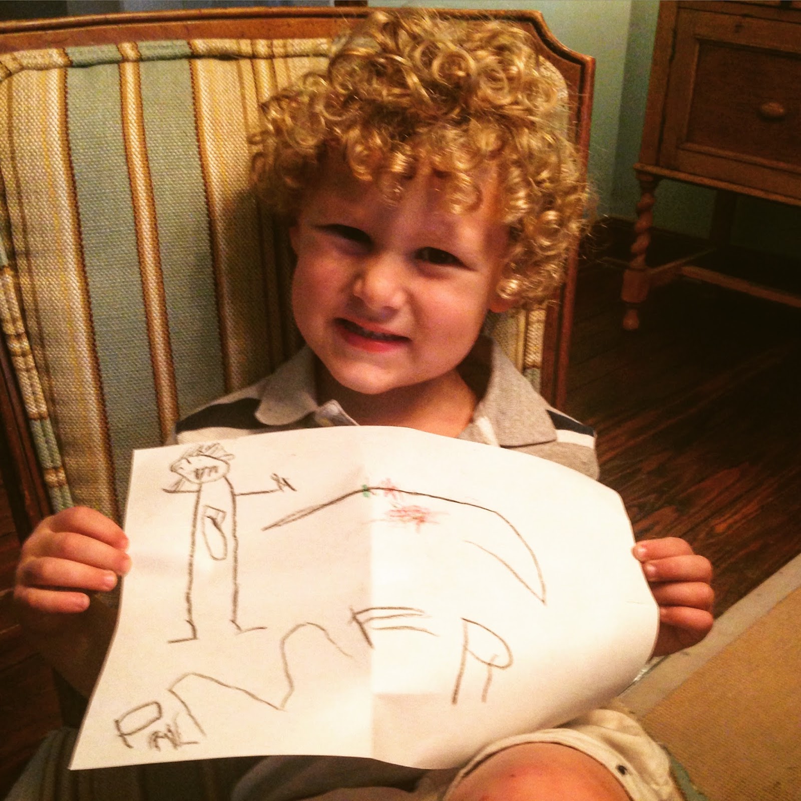 (Palmer also said the drawing was of his favorite things. I asked about his mom and got a polite, "No, thank you!" Ummmm....)